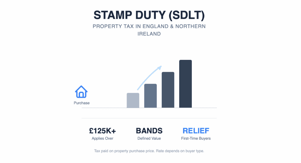 Stamp Duty Land Tax (SDLT) is a property tax paid when you purchase residential or commercial property in England and Northern Ireland. It applies to both freehold and leasehold transactions and is calculated on a sliding scale based on the property’s purchase price.