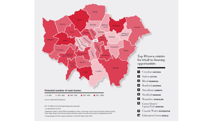 In total, it found that there is the potential to create 16,117 new homes across the capital, with Croydon, Sutton and Ilford identified as the top three centres for regeneration.